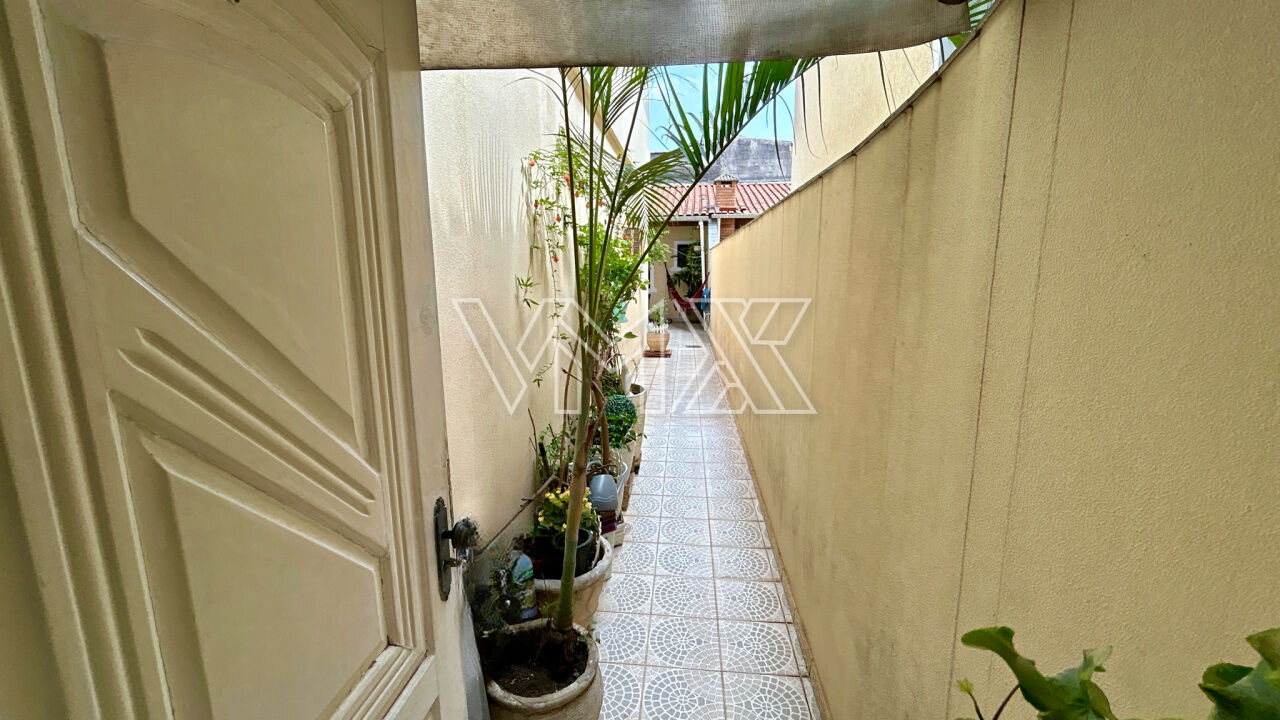 Sala ampla para dois ambientes (estar e jantar), corredor lateral que dá acesso ao quintal nos fundos e a área de serviço, Quarto com banheiros nos fundos para empregados, cozinha espaçosa com armários planejados.