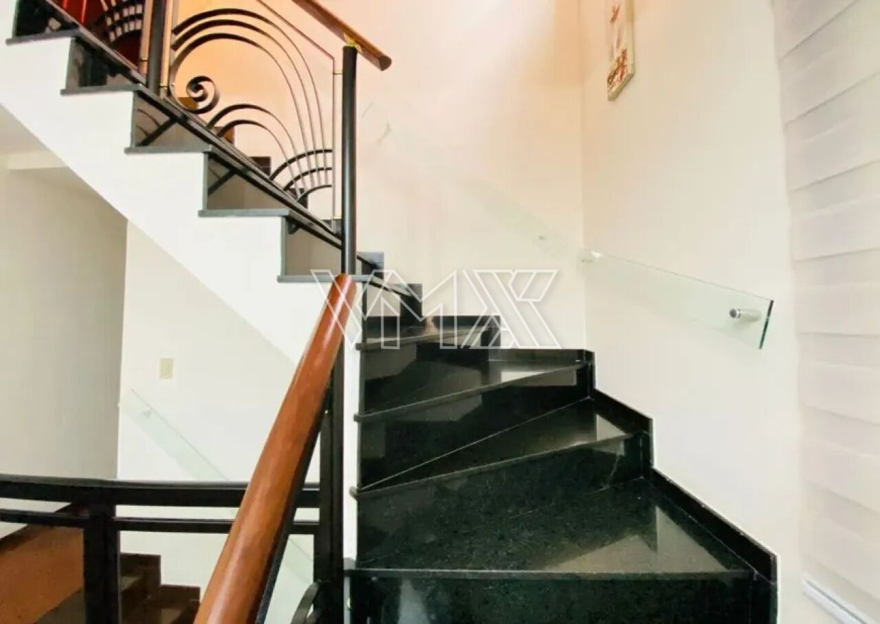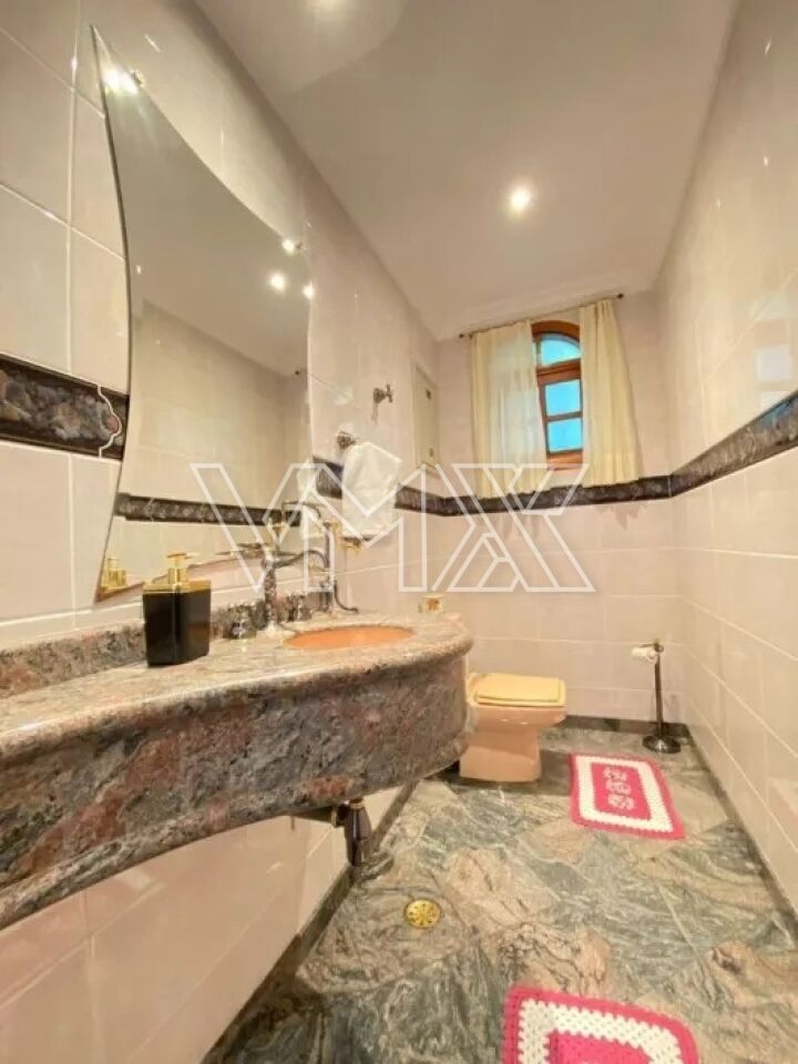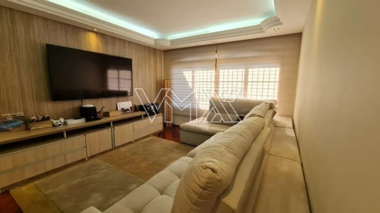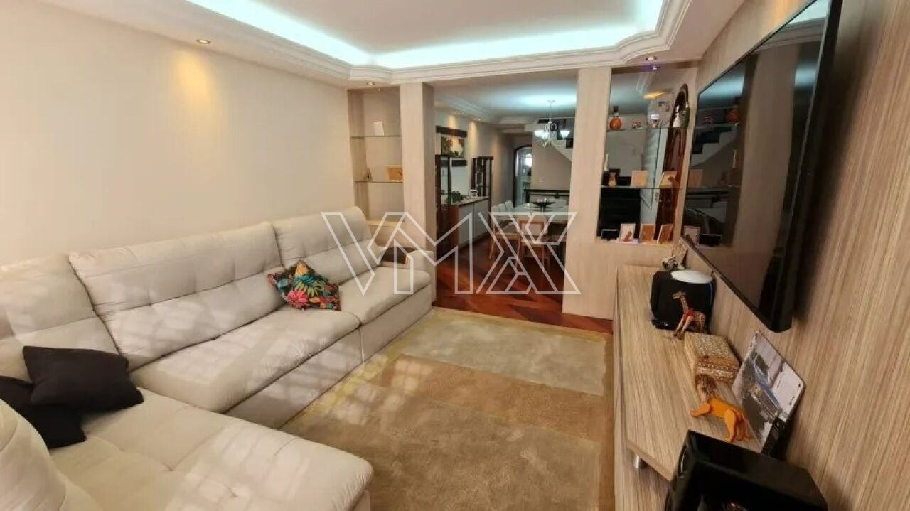 Sobrado com 300 m² de área útil, oferecendo cômodos amplos, arejados e acabamento de primeira linha. O imóvel está totalmente mobiliado e é rico em móveis planejados em todos os ambientes. Possui 3 dormitórios, sendo uma suíte ampla com hidromassagem e closet, além de um quarto com sacada envidraçada. Conta ainda com quarto e banheiro de empregada, além de salas de estar, TV e jantar bastante espaçosas.