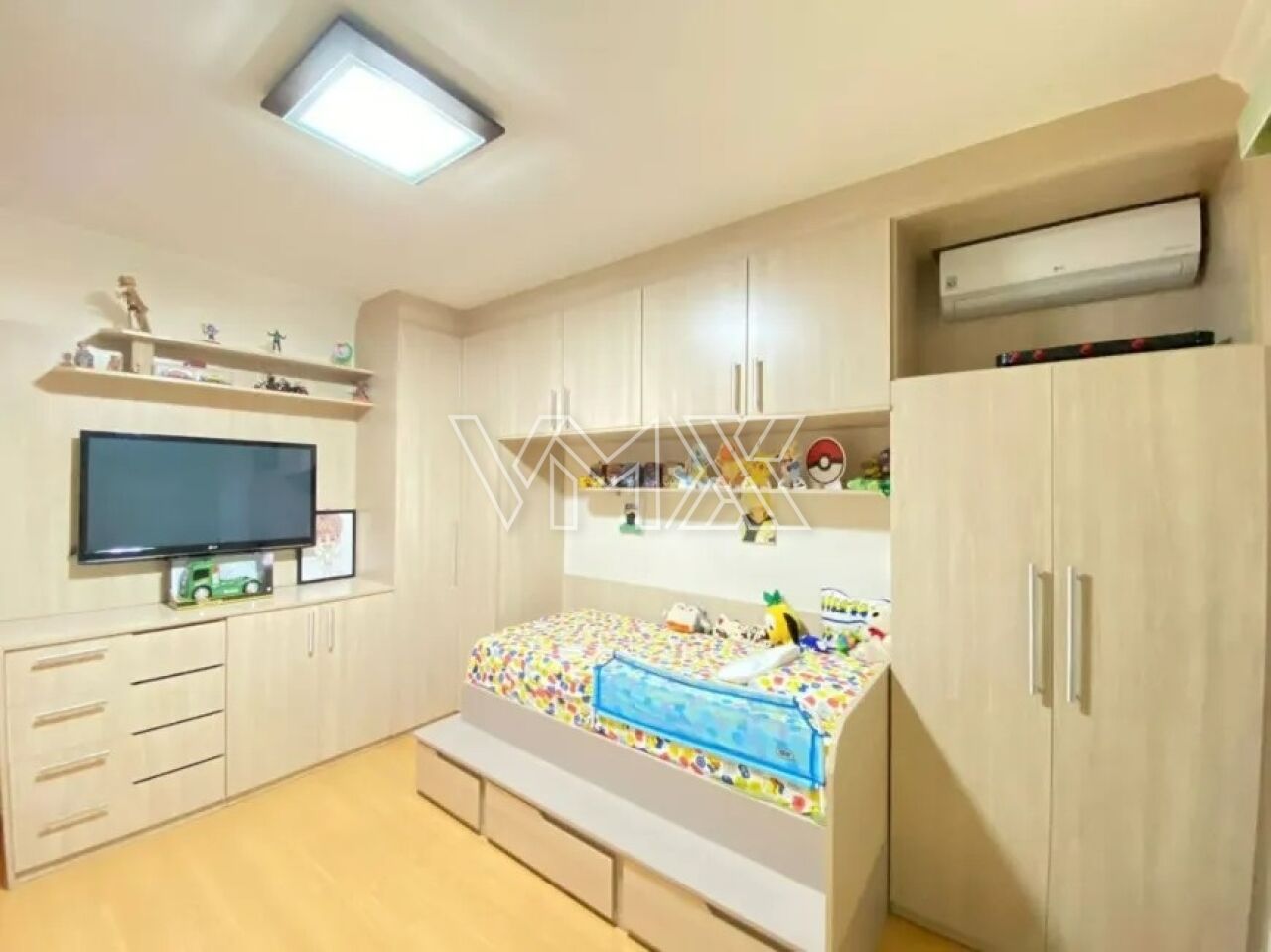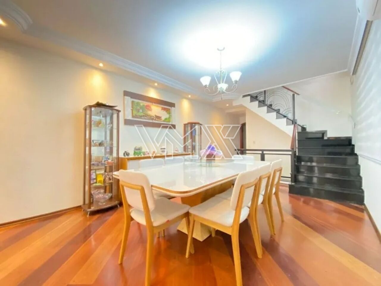 Os quartos têm piso laminado, enquanto a sala conta com piso de madeira jatobá e lavabo. O sobrado também oferece sistema de alarme, interfone, câmeras de monitoramento e ar-condicionado em todos os quartos, na sala e no sótão ? totalizando 5 aparelhos.