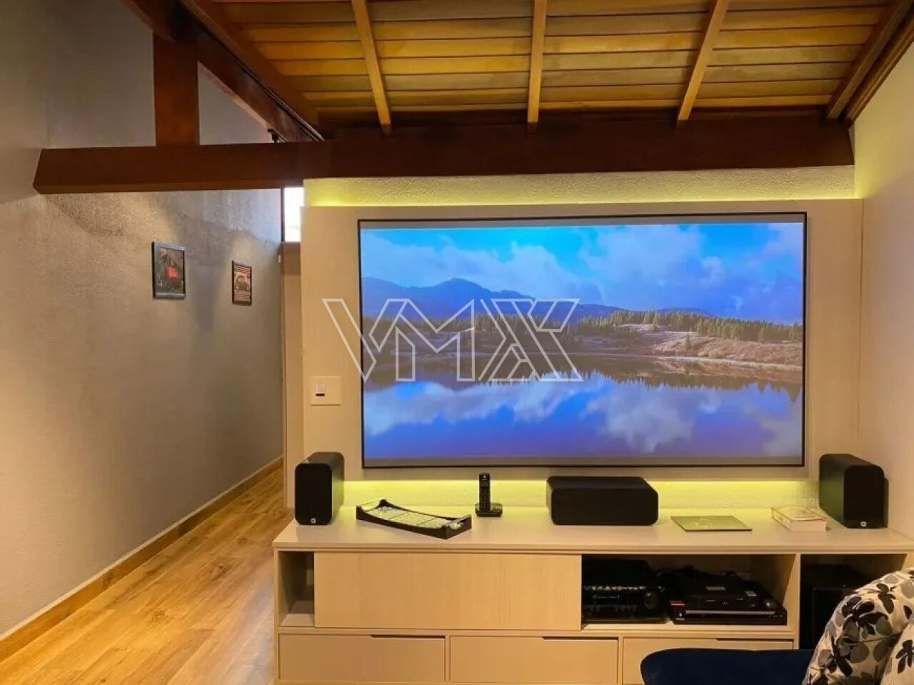 A cozinha e a lavanderia estão equipadas com armários embutidos, proporcionando praticidade e organização. Um dos grandes diferenciais é o sótão de aproximadamente 80 m², transformado em sala de cinema completa, com sistema de automação digital, telão de 80 polegadas, som surround, bar com cervejeira, adega climatizada e armários.