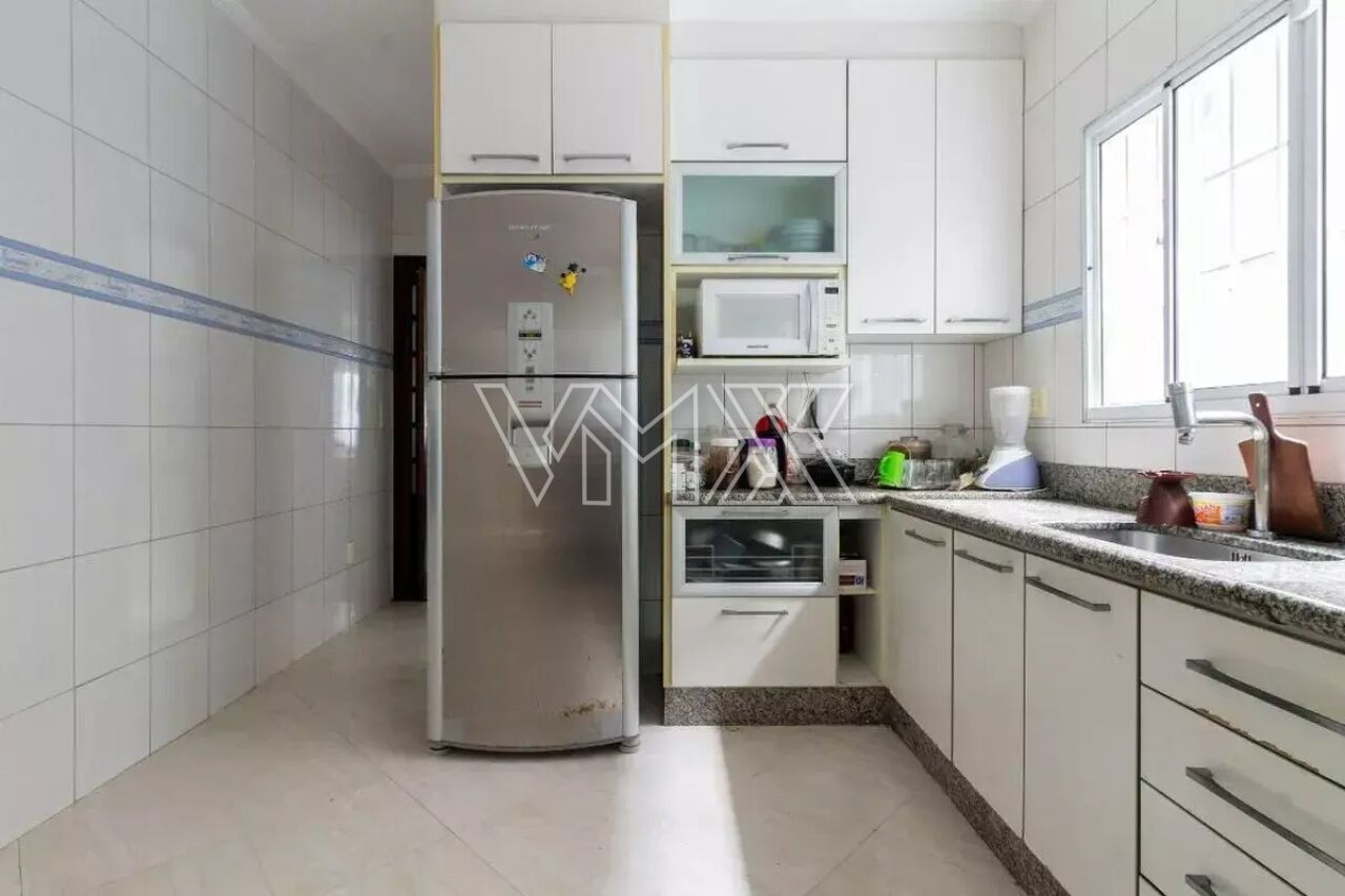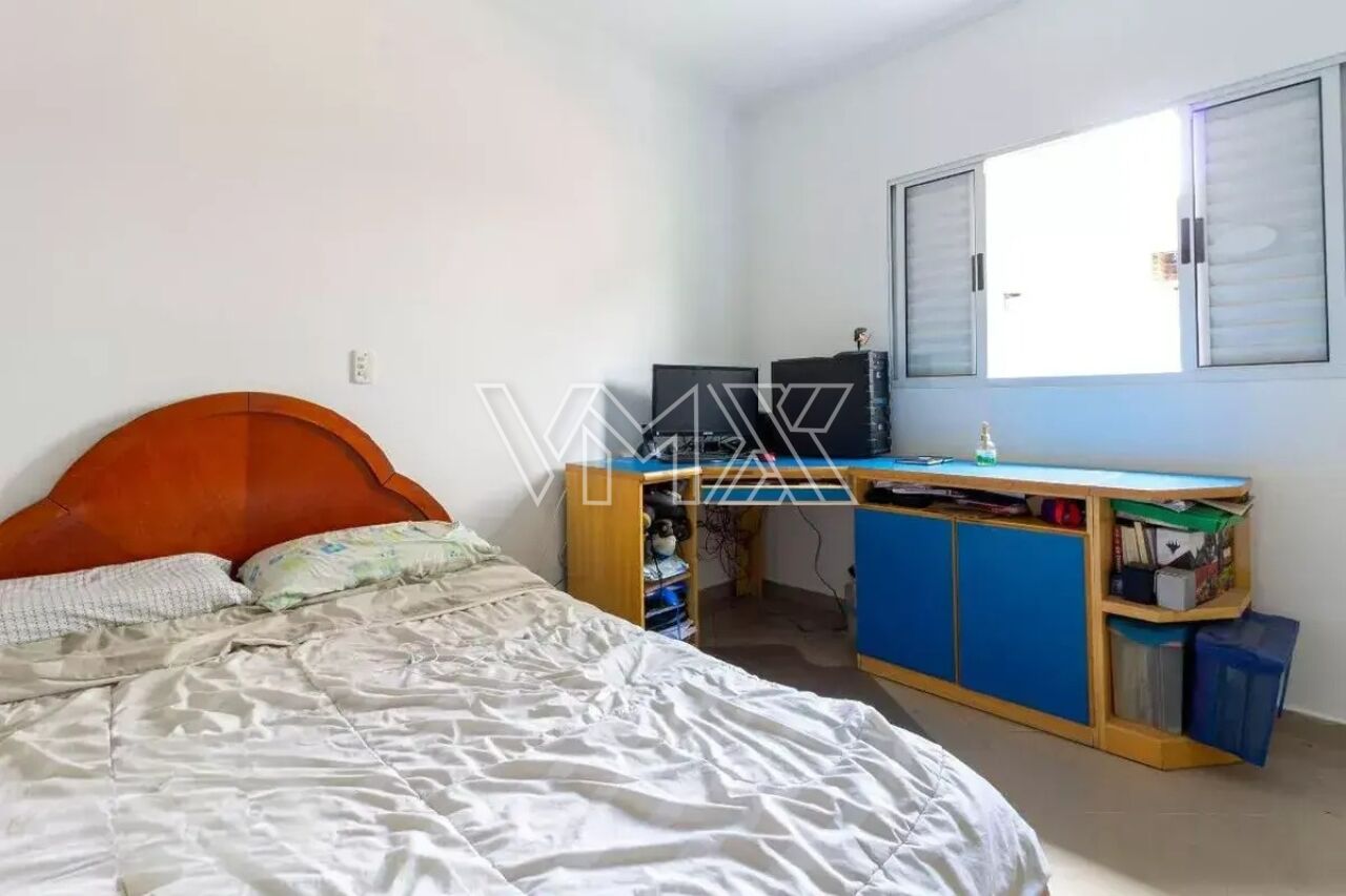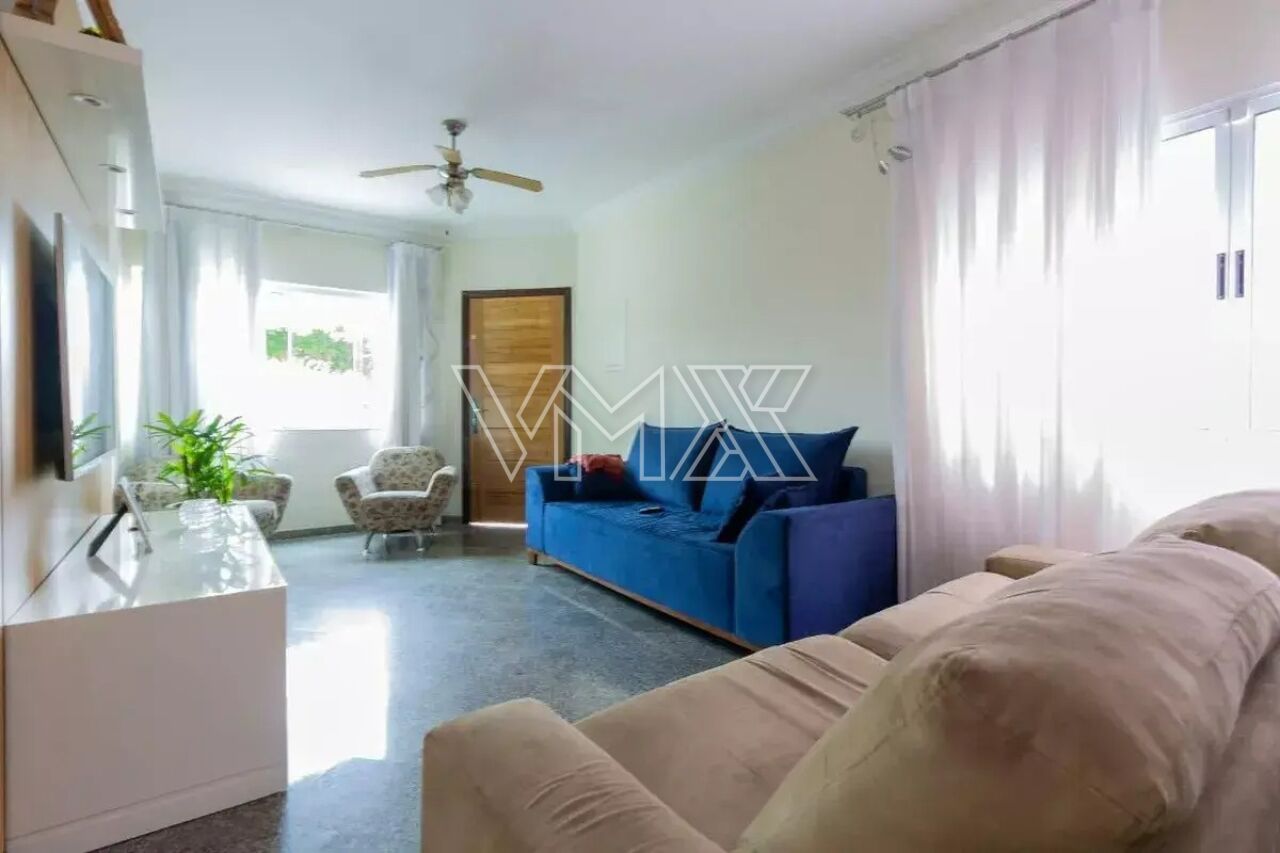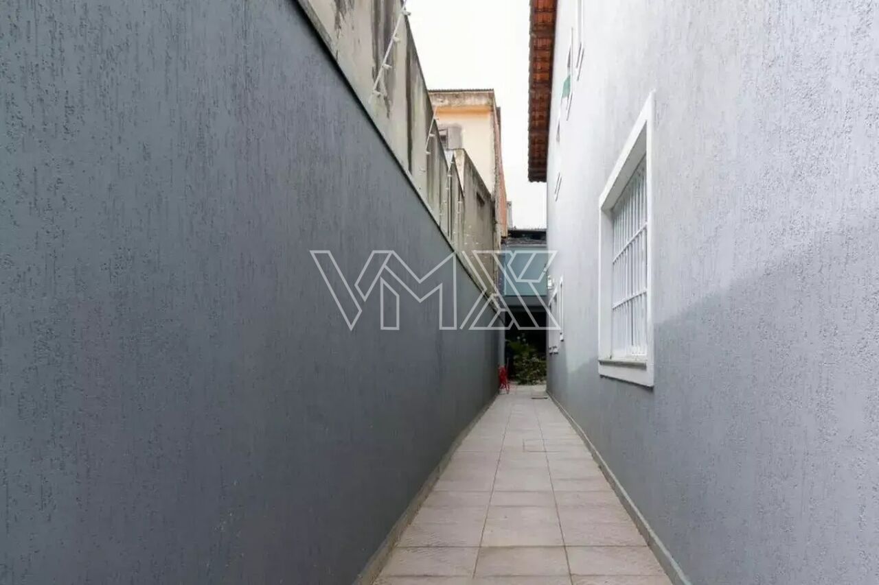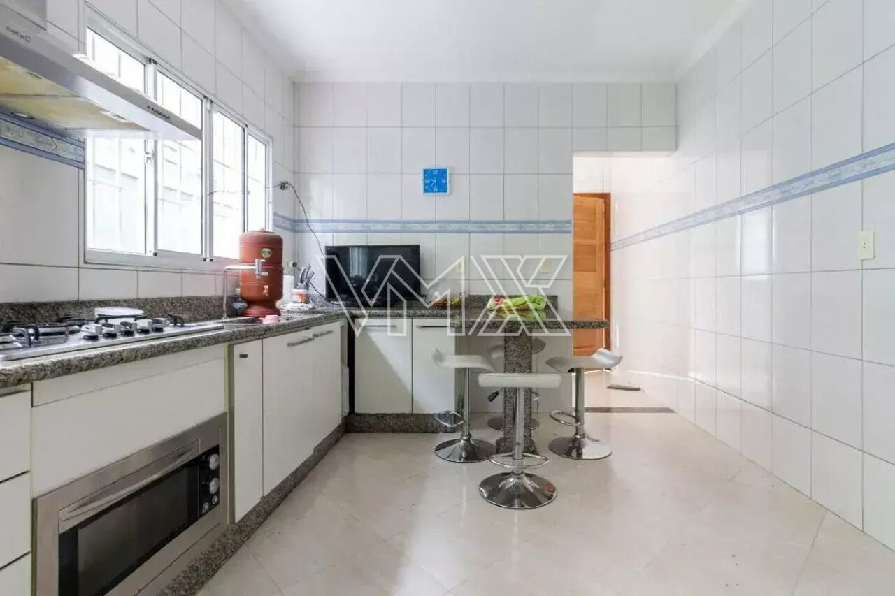 São três dormitórios, sendo uma suíte, além de uma ampla sala de estar, banheiro social, lavabo, cozinha equipada com armários planejados e ótima distribuição interna. Na área externa, o sobrado conta com corredor lateral, quintal espaçoso e uma completa área de lazer com churrasqueira, forno a lenha e banheiro de apoio. A área de serviço é funcional e o imóvel oferece até seis vagas de garagem, um grande diferencial na região.